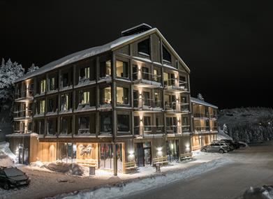 Bare 50 meter fra skibakkene ligger dette moderne hotellet i Gausta, med 30 funksjonelle enheter – fra koselige dobbeltrom til romslige leiligheter for opptil 8 personer. Hotellet har et smart selvbetjeningskonsept og stilren skandinavisk design, perfekt for gjester som ønsker både komfort og frihet midt i fjellet.