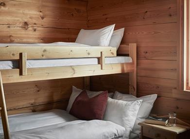 Gaustablikk Fjellresort har en 16-mannshytte i laftet tømmer på ca 170 kvm. Hytten har 5 soverom (rom 1: dobbeltseng, rom 2: dobbeltseng, rom 3: 2 stk køyesenger, rom 4: køyeseng + familiekøyeseng, rom 5: køyeseng + familiekøyeseng), 3 bad hvorav det ene har badstue. Velutstyrt kjøkken med oppvaskmaskin, stort kjøle- og fryseskap, stekeovn, mikrobølgeovn, kaffetrakter og servise. Stue med peis, spisebord, salong, TV og trådløst Wifi. Utenfor hyttene er det terrasse med flott utsikt og meget gode solforhold. Hyttene ligger ca 150 meter fra hotellet og har ski in/out til Gausta Skisenter og langrennsløyper. Sengetøy og håndklær er inkludert