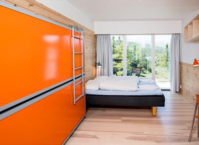 På fjellstuen bor du i moderne rom beregnet til 2-4 personer. Mange rom har utsikt til Gaustatoppen og eget toalett/dusj. Fjellstuen har også køyesengs rom med felles toalett/dusj, hvor dere kan bo opp til 6 personer.
