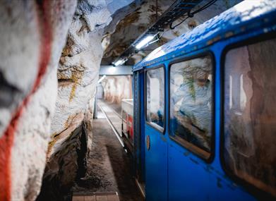 Gaustabanen består av to baner. Først frakter den blå trikken deg 850 meter rett inn i midten av fjellet. Deretter forflytter du deg til en taubane bestående av to vogner, som drar hverandre opp 1050 meter - med en stigning på 39 grader.