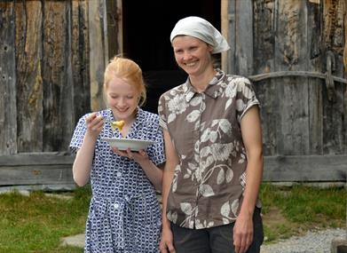Fulle av fryd sitter ungene på torvtaket og koser med kaninene, eller hopper frå stein til stein med geitekje og koppelam. Fore grisene med surmjølk som spruter er også en slager.