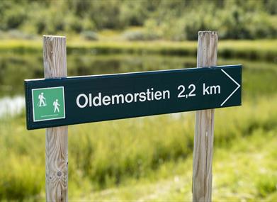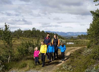 Følg stien sør for parkeringsplassen til Hardangervidda Nasjonalparksenter. Ved skiltet ”Stormyra”, ta stien til høyre mot Møsvatn Fjellpark.