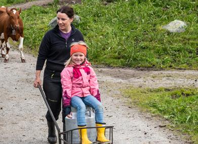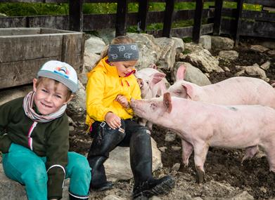 Inne på setra møter du også gjerne kalver, koppelam, griser, kaniner, ender og høner.
