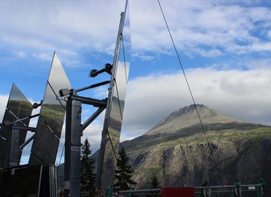 Etter ca. 1,5km følger du skilt mot Solspeilet. Herfra er det ca. 200 meter til Solspeilet.