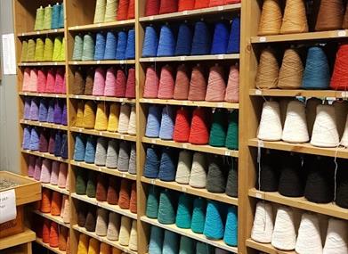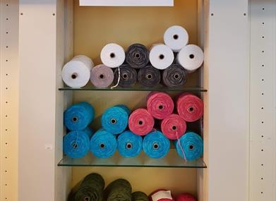 Driften av butikken handler om litt forskjellig, selvfølgelig mye vev-garn og vev-utstyr,